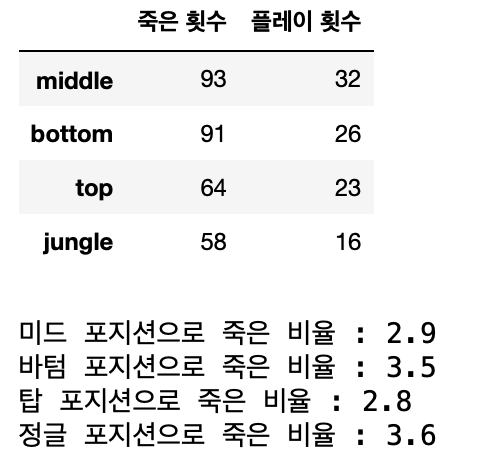 죽은 비율을 기준으로 봤을 때 주 포지션과 부포지션